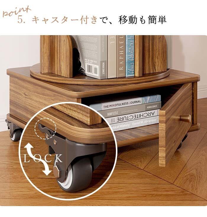 360°回転式 キャスター付き回転本棚