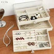 お手持ちのジュエリーやアクセサリーなどの小物を一括管理できる3段引き出しジュエリー収納ボックスです
