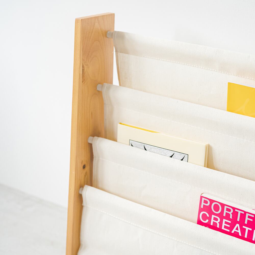 収納部分の受け布の深さは約30cmで、大きめの本や雑誌も収納可能。