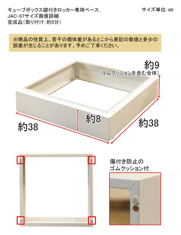 ベースの底面にはキューブBOXと同様に床に傷がつきにくくなるゴムクッションが付属します